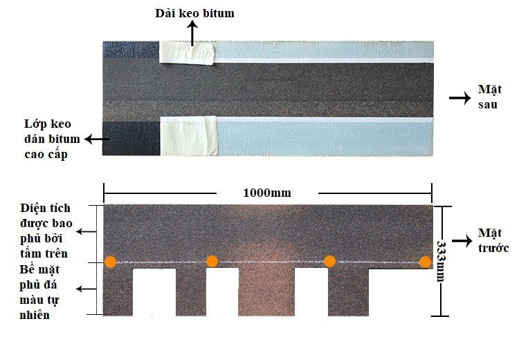 - Ngói dán bitum hoàn toàn không có Amiăng.