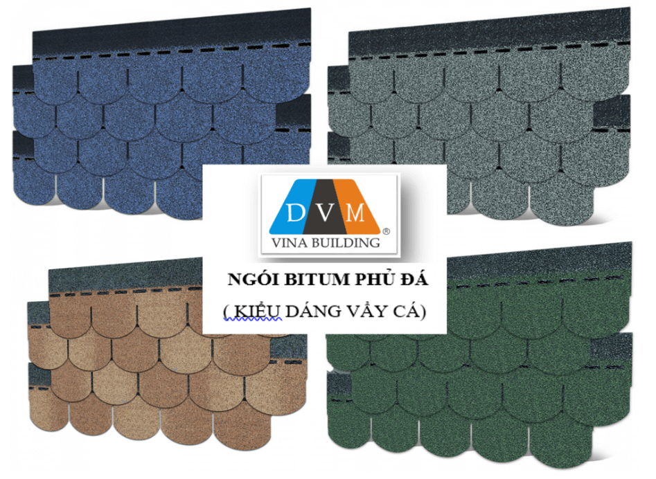 - Ngói dán bitum đa dạng màu sắc, đa dạng kiểu dáng.
